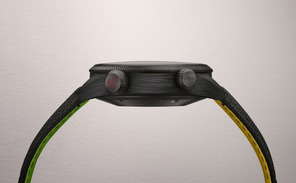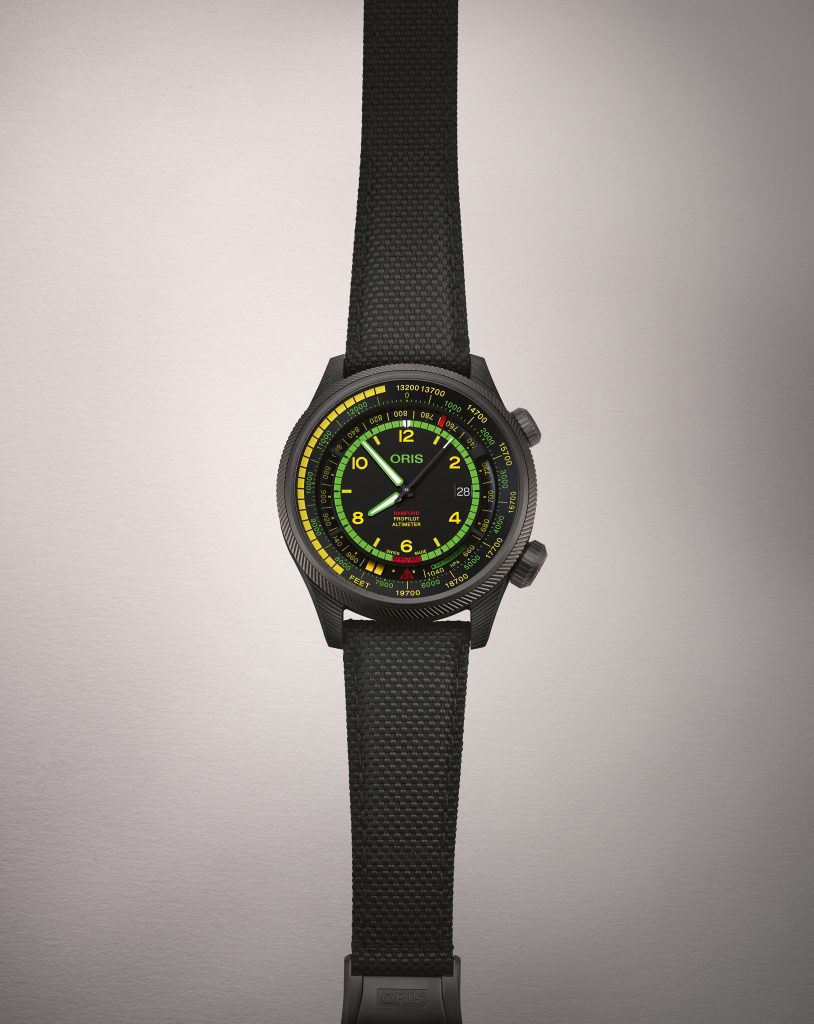 รังสรรค์ขึ้นบนพื้นฐานนาฬิกา Oris ProPilot Altimeter ซึ่งเป็นนาฬิกาเพียงรุ่นเดียวในโลกที่บรรจุกลไกจักรกลออโตเมติก Swiss Made ควบคู่กับมาตรวัดความสูงเชิงกล โดยสามารถแสดงค่าระดับความสูงได้สูงสุดถึง 19,700 ฟุต ผ่านหนึ่งในคอมพลิเคชันที่น่าทึ่งที่สุดแห่งศาสตร์การผลิตนาฬิกาสวิส ตัวเรือนของรุ่นนี้ก็มีความพิเศษเช่นกัน ผลิตจากคาร์บอนไฟเบอร์ด้วยเทคนิคการขึ้นรูปแบบ Additive Manufacturing ที่พัฒนาโดยหนึ่งในพันธมิตรของ Oris จากสวิตเซอร์แลนด์ วัสดุชนิดนี้มีน้ำหนักเบาเทียบเท่าพลาสติก แต่แข็งแกร่งกว่าโลหะส่วนใหญ่ โดยนาฬิกาจะเปิดตัวในงาน Geneva Watch Days โดยผลิตจำนวนจำกัดเพียง 250 เรือน และพร้อมวางจำหน่ายทันที