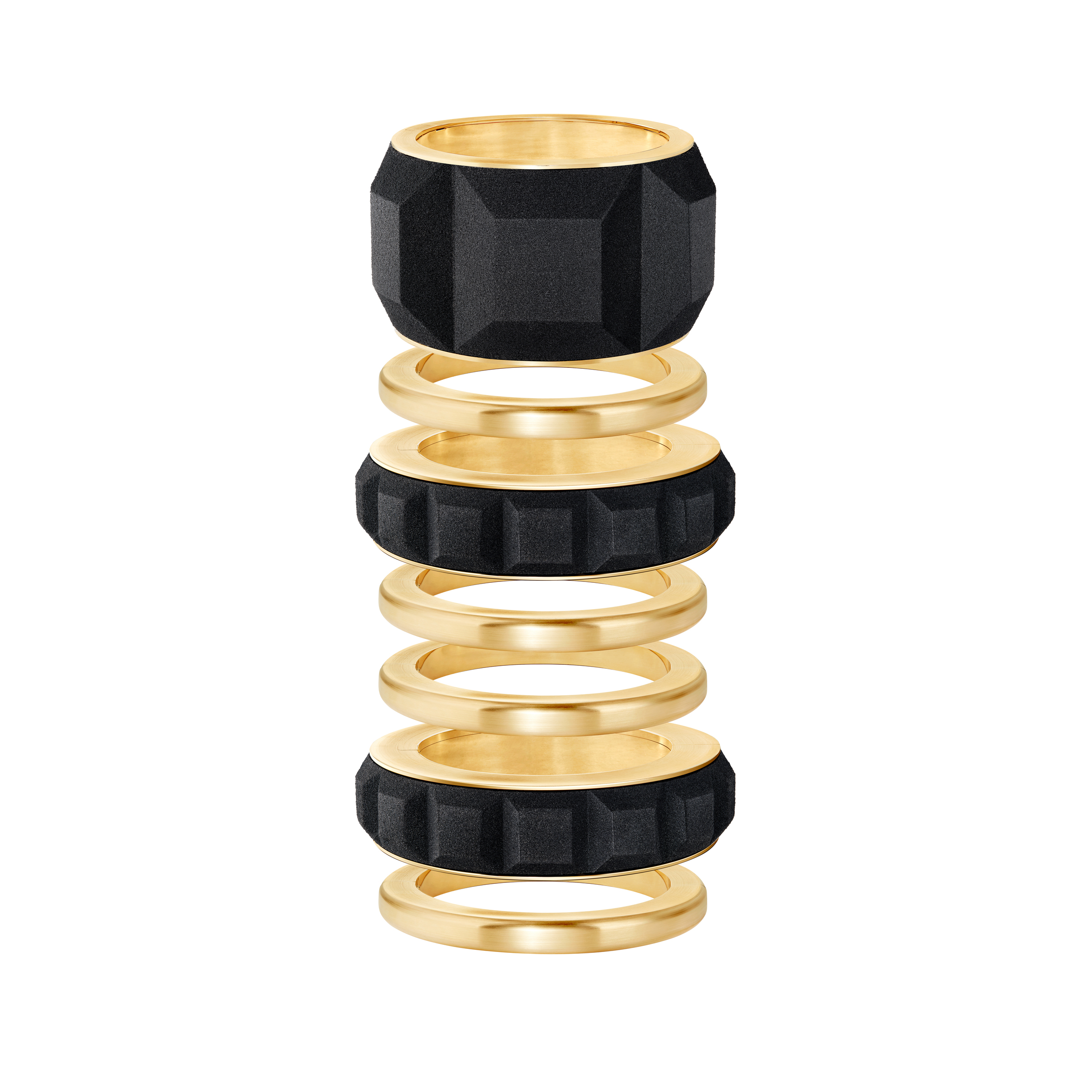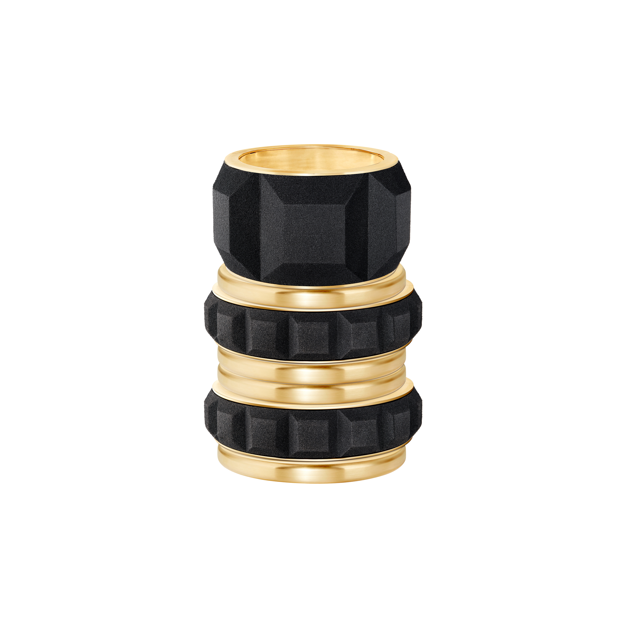 ในแคปซูลคอลเลกชั่นใหม่นี้ แคลร์ ชวส์น มุ่งมั่นที่จะก้าวข้ามผ่านขีดจำกัดทางเทคนิค ด้วยการตีความผลงานชิ้นไอคอนิกของเมซงอย่าง Quatre ใหม่อีกครั้งผ่านมุมมองใหม่ โดยเธอได้ออกแบบ ชุดกำไลเจ็ดชิ้นให้สามารถสวมซ้อนกันหรือแยกใส่ได้ตามต้องการ ชิ้นงานทั้งเจ็ดนั้นประกอบด้วยกำไลทรายสีดำและทองคำสีเหลืองไซส์ XXL ที่โดดเด่นด้วยลวดลาย Clou de Paris (กลู เดอ ปารีส์) และกำไลไซส์เล็กอีกสองชิ้นในดีไซน์เดียวกัน ปิดท้ายด้วยกำไลทองคำปัดด้านอีกสี่วงเพื่อเติมเต็มลุคให้สมบูรณ์ ทรายสีดำถูกคัดสรรมาเพื่อสร้างคอนทราสต์ที่เด่นชัดเมื่ออยู่เคียงคู่กับสีโทนอุ่นอย่างทองคำสีเหลือง สะท้อนถึงจิตวิญญาณของคอลเลกชั่น Quatre ที่มีความงดงามอันโดดเด่นและร่วมสมัย