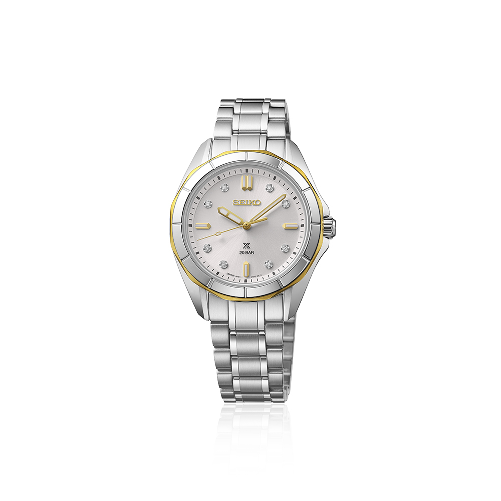 เพิ่มระดับความสง่างามและน่าหลงไหลไปอีกขั้น กับ 2 สีหน้าปัดซันเรย์ ได้แก่ สีเงิน (SUR618J) และสีน้ำเงิน (SUR620J) ที่มาพร้อมหลักชั่วโมง ประดับเพชรแท้ 8 ตำแหน่ง ขนาดตัวเรือน 34 มม. ตัวเรือนและสายผลิตจากสเตนเลสสตีล สลับการขัดเงาและด้านบนสายข้อกลาง อีกทั้งยังเพิ่มเสน่ห์และมิติให้กับนาฬิกา ด้วยการเคลือบ Gold IP-Coating บนหลักชั่วโมง ชุดเข็ม และขอบตัวเรือน