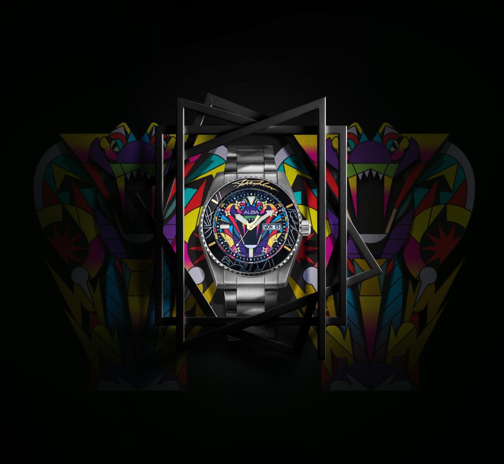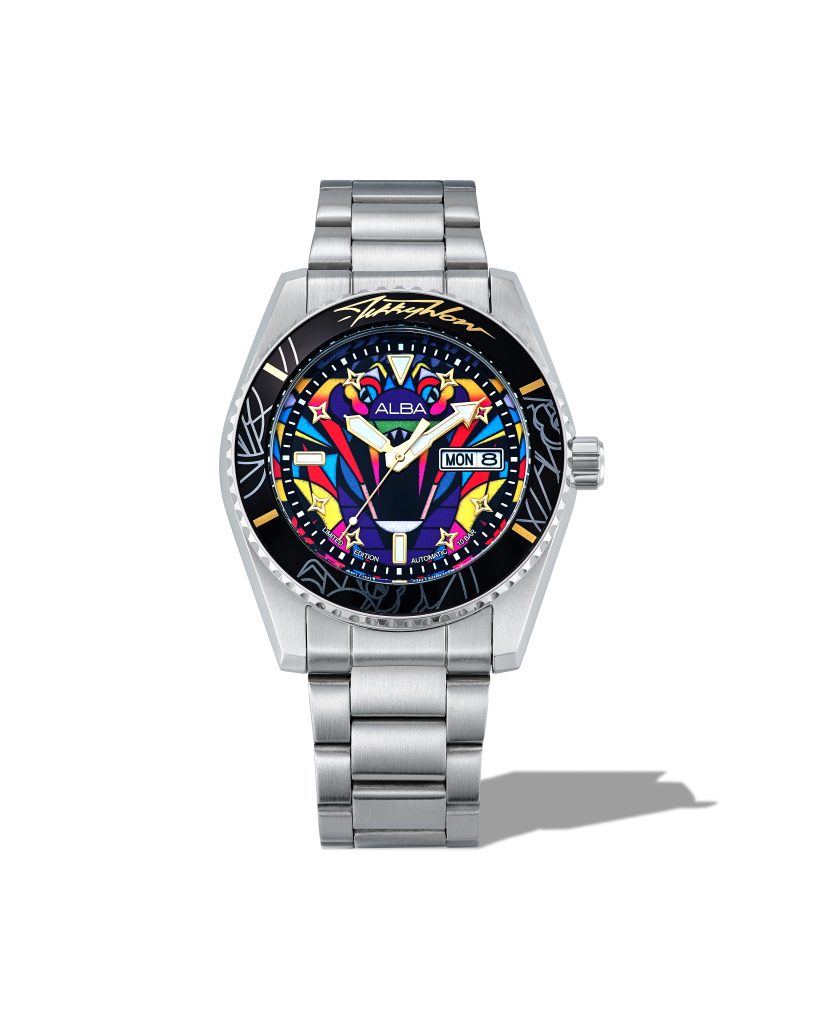 ALBA x Tikkywow Limited Edition รหัส AL4807X โดดเด่นด้วยลวดลาย “The King Kobura” ที่ถูกออกแบบเป็นพิเศษ เข้ากับสีสันที่เป็นเอกลักษณ์เฉพาะตัว อีกทั้งขอบเบเซลในตำแหน่ง 12 นาฬิกา ยังมีลายเซ็นของ Tikkywow กำกับไว้นอกจากสีสันที่จัดจ้านแล้ว หลักชั่วโมงยังเพิ่มดีกรีความสนุกและไม่เหมือนใครให้กับนาฬิกาเรือนนี้ ด้วยรูปทรงดาวสีทอง ที่รับกับชุดเข็ม