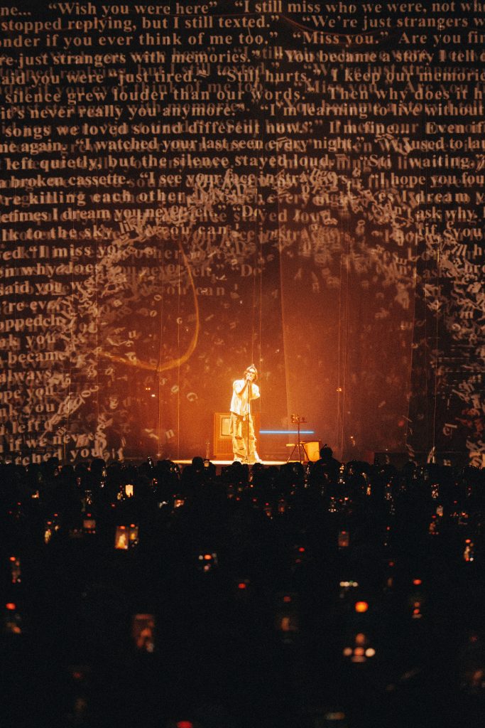 อีกหนึ่งไฮไลต์ที่ตรึงหัวใจผู้ชมไว้ได้อย่างแน่นหนา คือช่วงเวทีรองที่ PUN เล่นกีตาร์และเปียโนด้วยตัวเอง ถ่ายทอดอารมณ์เศร้าลึกใน “After the party’s over”, “หล่น (Faded)” และ “Goodbye” ท่ามกลางเวทีที่คลุมด้วยผ้าขาวโปร่งและแสงโปรเจกเตอร์ละมุน เป็นภาพจำที่ทั้งสวยงามและเปราะบางในเวลาเดียวกัน ซีนที่หลายคนยกให้เป็น “ช่วงเวลาที่งดงามที่สุด” ของคอนเสิร์ตครั้งนี้