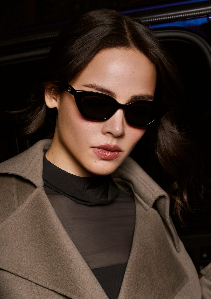 แว่นกันแดดทรง Cat Eye ที่เฉียบคมและสง่างามผลิตจากวัสดุ Titanium แข็งแรงแต่น้ำหนักเบาสะท้อนความเรียบหรู