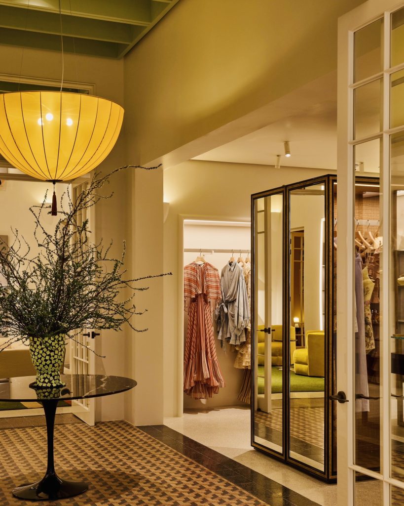 การออกแบบภายในบูติกเป็นผลงานของ Studio McQualter ซึ่งร่วมงานกับแบรนด์มาอย่างยาวนาน ถ่ายทอดบรรยากาศที่อบอุ่น หรูหรา และมีมิติ ผ่านการผสมผสานศิลปะร่วมสมัยกับกลิ่นอายของสถาปัตยกรรมคลาสสิก รายละเอียดโดดเด่นด้วยแรงบันดาลใจจากสไตล์ Dutch Art Deco ผสานความงามแบบงานฝีมือและกลิ่นอายศิลปะยุค 1970s อย่างกลมกลืน
