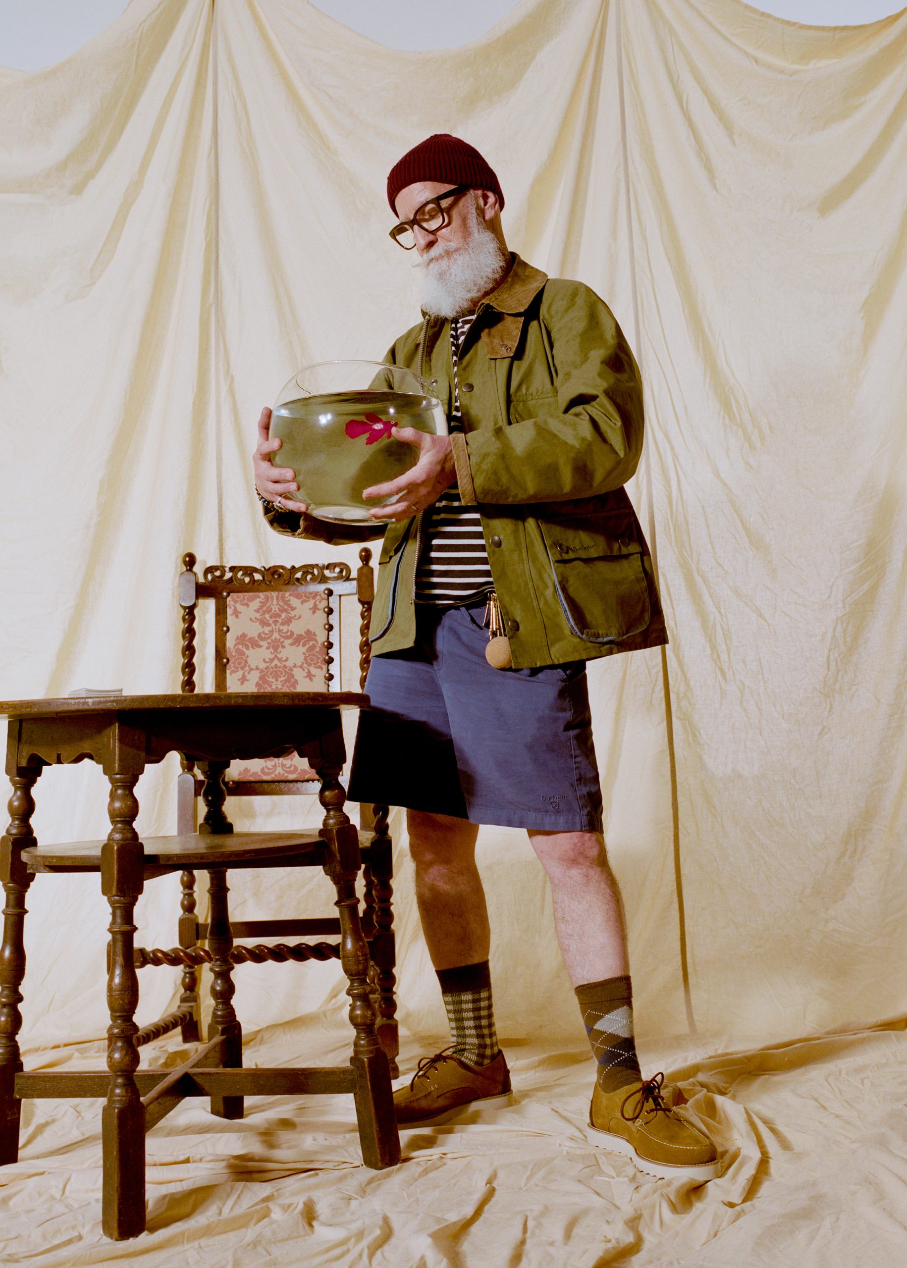 ในส่วนของเอาเตอร์แวร์ได้มีการนำแจ็กเก็ตคลาสสิกของ Barbour มาตีความใหม่ด้วยลวดลายใหม่ๆ เช่น ลาย Gingham สีน้ำเงินและเขียวในรุ่น Transport และ Spey รวมถึงแจ็กเก็ตผ้าเคลือบแว็กซ์รุ่นไอคอนิกอย่าง Durham ในโทนสีใหม่ นอกจากนี้ ลายทางของ Paul Smith และลายสก็อตต้นตำรับของ Barbour ยังถูกนำมาใช้ตัดเย็บเป็นซับในรองเท้าของช่วงปลายปี และปิดท้ายด้วยรายละเอียด D-rings ที่ได้รับแรงบันดาลใจจากอาร์ไคฟ์ของแบรนด์