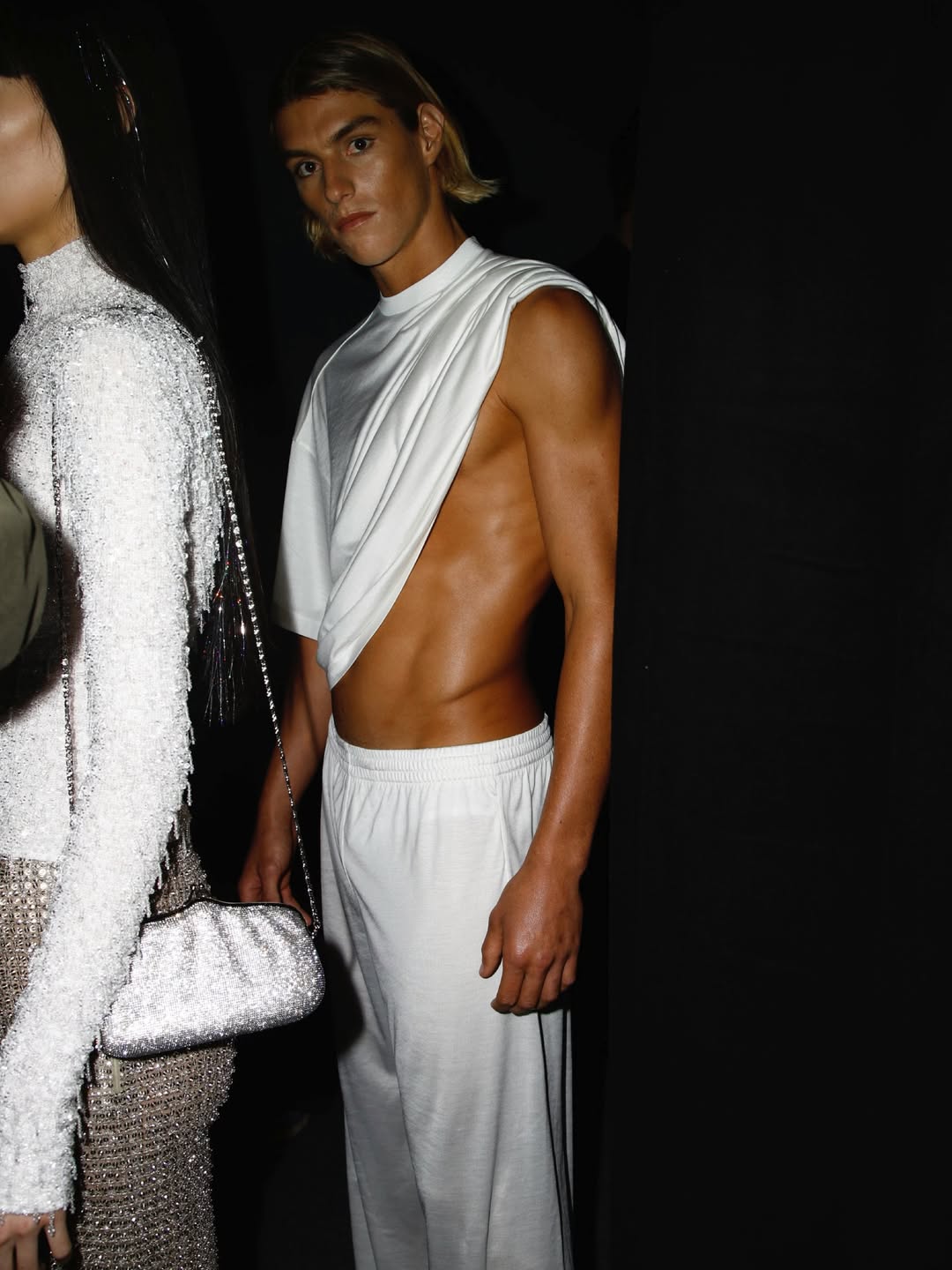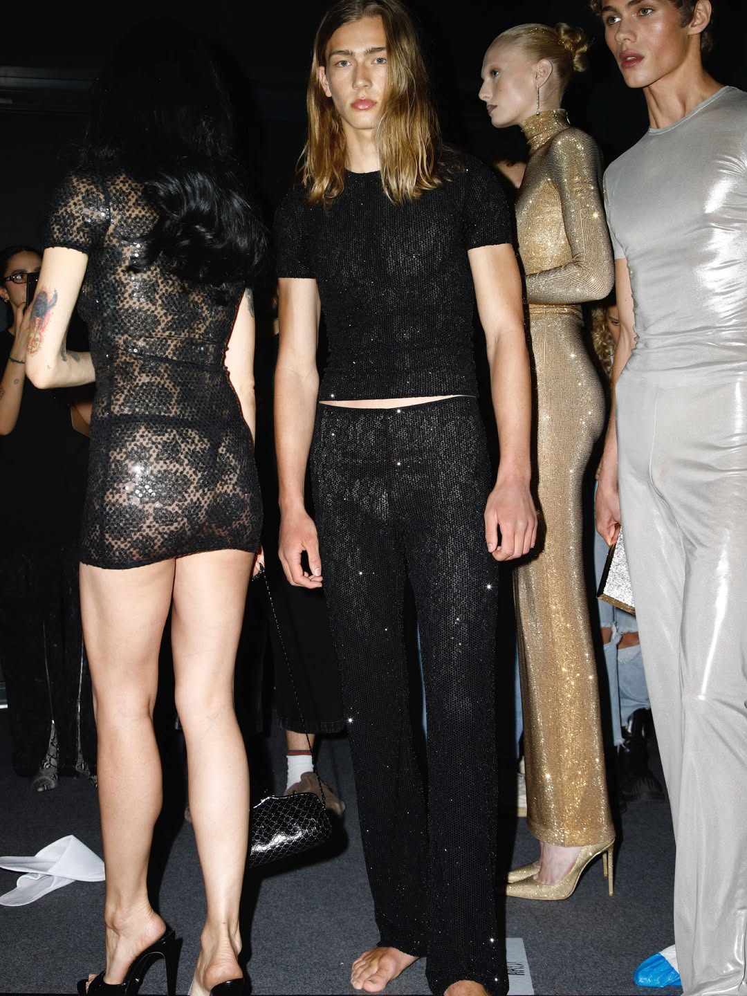 แม้แต่การคัดเลือกเหล่าผู้แสดงแบบที่หลากหลาย ตั้งแต่รูปร่างแบบนักเพาะกายไปจนถึงสกินนี่ ไปจนถึงการไร้ข้อจำกัดในการมิกซ์แอนด์แมตช์ ทั้งหมดนี้ทำให้ผมรู้สึกถึงอิสรภาพอย่างแท้จริง เสื้อรัดรูปจับคู่กับกางเกงหนังแกะแบบ 5 กระเป๋า (ทรงกางเกงยีนส์) การจับคู่กันระหว่างเสื้อแนวสปอร์ตกับแจ๊กเก็ตเบลเซอร์ผ้าดิ้นแวววาว รองเท้าผ้าใบทรงเพรียวที่ได้แรงบันดาลใจจากอากาศพลศาสตร์ของรถสปอร์ต หรือแม้แต่การสะพายกระเป๋า bumster กับลุคกลางคืน ทุกอย่างดูเป็นไปได้ และไม่มีกรอบใดมาจำกัดจินตนาการ