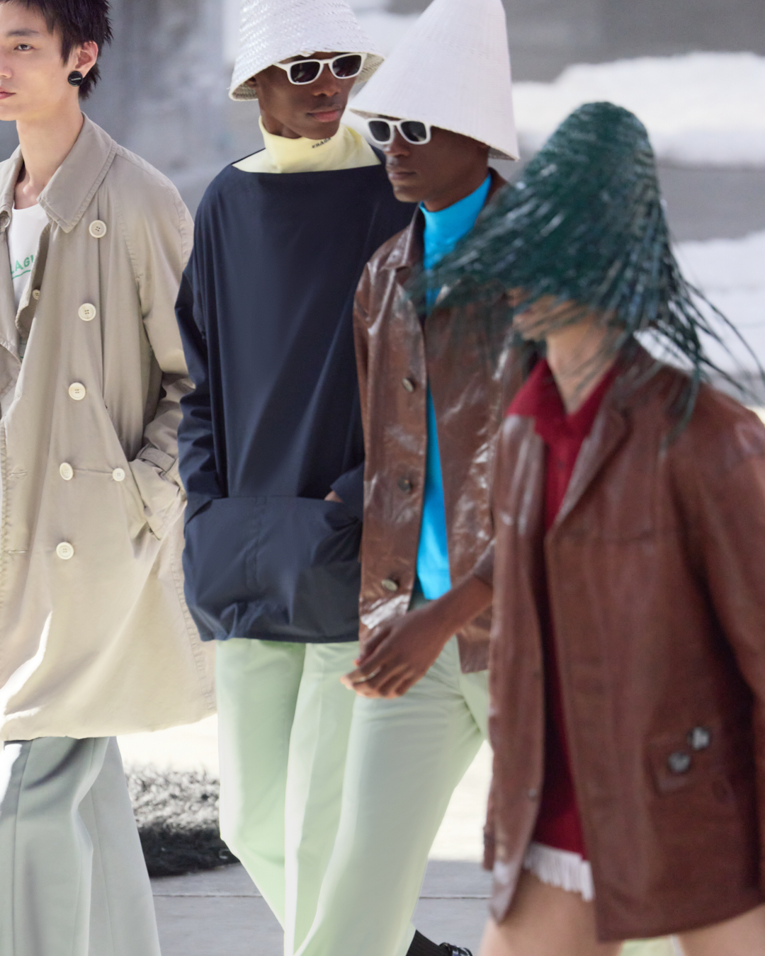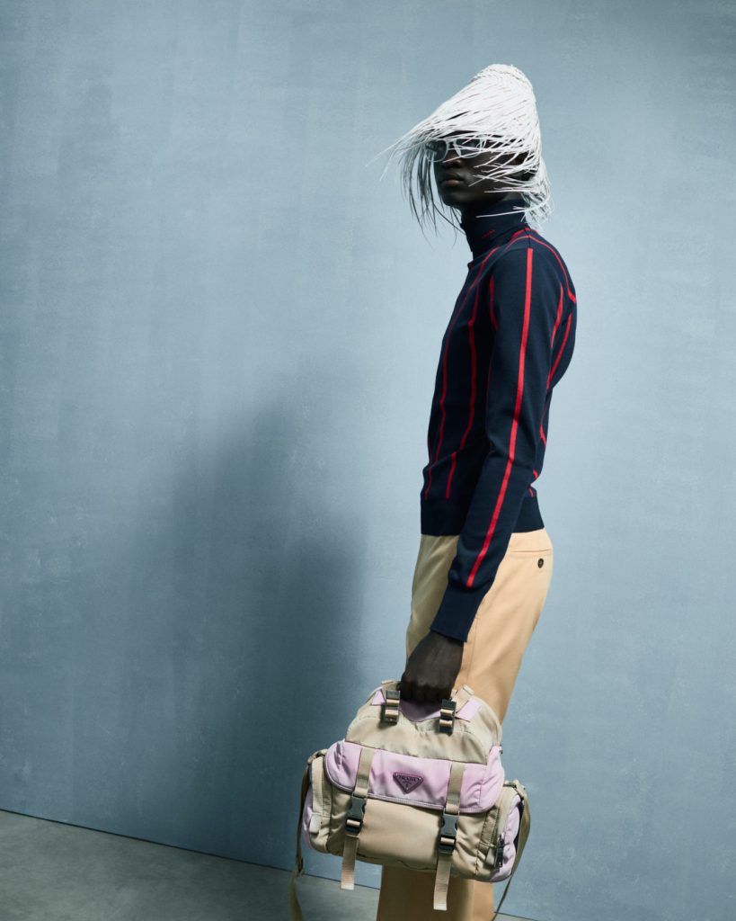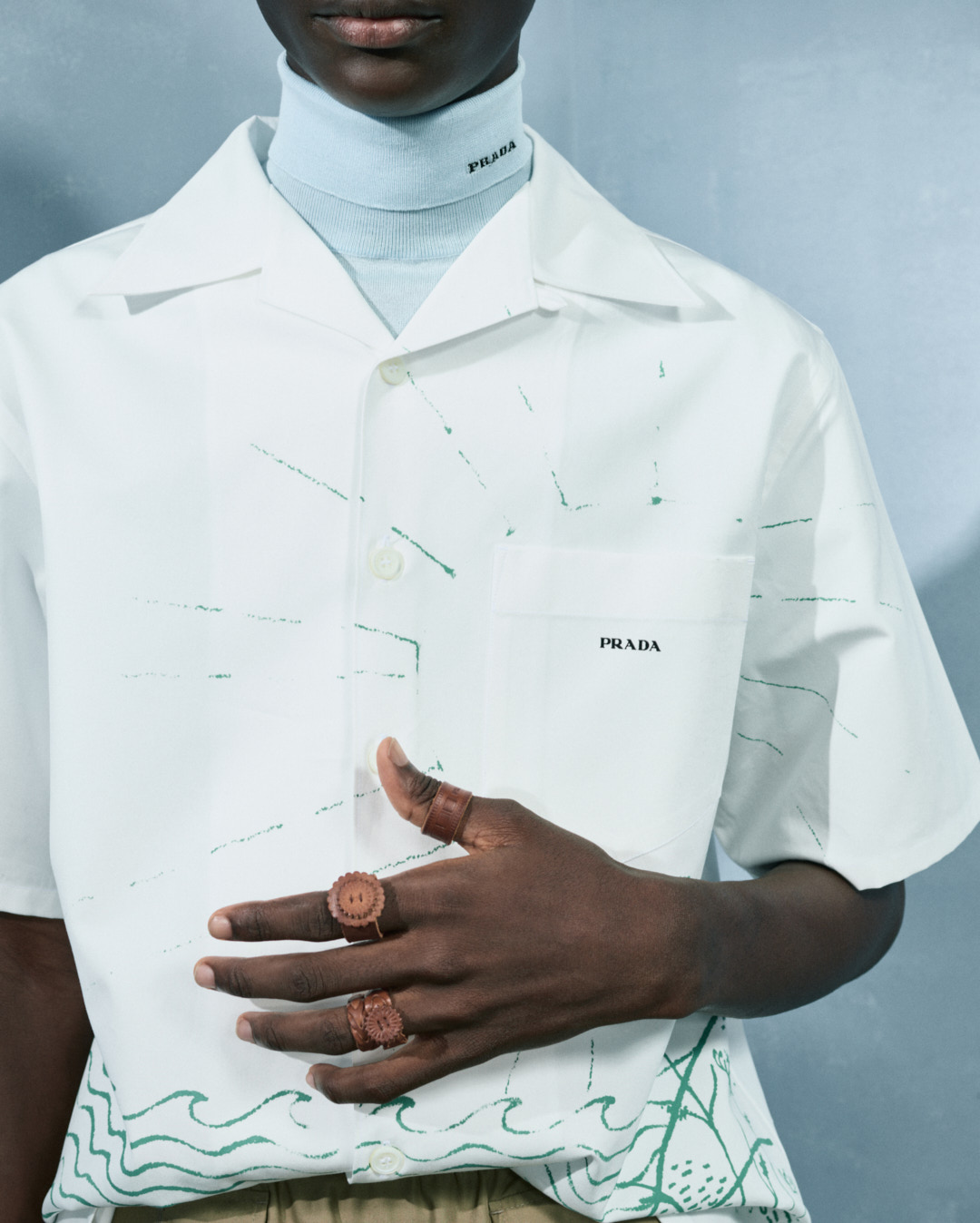 ในส่วนแอ๊กเซสเซอรี่เด่นต้องยกให้ หมวกสานทรงสูง ที่เป็นสเตทเม้นต์พีซของซีซั่น เข็มขัดเส้นเล็กที่จะพันหรือมัดแบบปล่อยชาย ที่สร้างมิติให้กับการแต่งตัว ปิดท้ายด้วยรองเท้าและกระเป๋าเน้นสีสัน Two-tone หรือเป้ Re-Nylon ที่แม็ตช์ได้กับทุกลุค รองเท้า Boat Shoes สีตัดกัน รองเท้าขับรถอันเป็นเอกลักษณ์ และโลเฟอร์หัวแหลมที่ให้ความรู้สึกกึ่งทางการแต่ยังดูโมเดิร์น ในหนังไวนิลหรือหนังนิ่ม