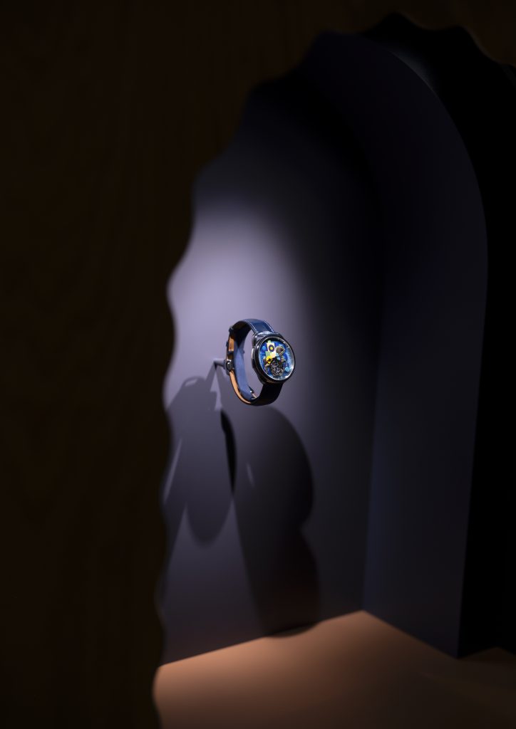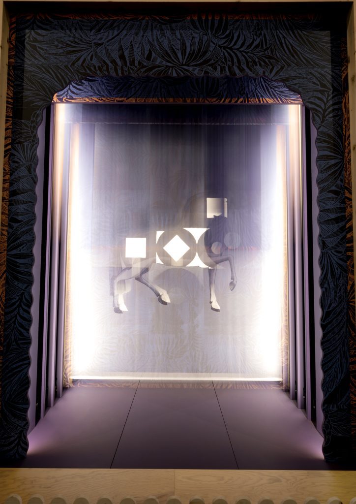 ความพิเศษยังไม่หมดเพียงเท่านั้น เพราะบริเวณศูนย์กลางของนิทรรศการยังมีการนำเสนอผลงานศิลปะที่ล้อไปกับการเคลื่อนไหวของเงาร่างม้าในรูปแบบรูปทรงเรขาคณิต ซึ่งเป็นการคารวะต่อลวดลาย Arceau Cavalier อันเป็นมรดกของแบรนด์ โดยเงาร่างเหล่านี้จะทำปฏิกิริยากับแผ่นไม้สีสันสดใสที่ขยับตามอย่างสอดประสานกัน ตอกย้ำว่าเวลาสำหรับ Hermès คือ “วัตถุ” แห่งการสร้างสรรค์ที่พร้อมจะเปลี่ยนทุกจังหวะชีวิตของผู้ชายยุคใหม่ให้กลายเป็นประสบการณ์ที่เต็มไปด้วยความสนุกสนานและความพิเศษในทุกเสี้ยววินาที