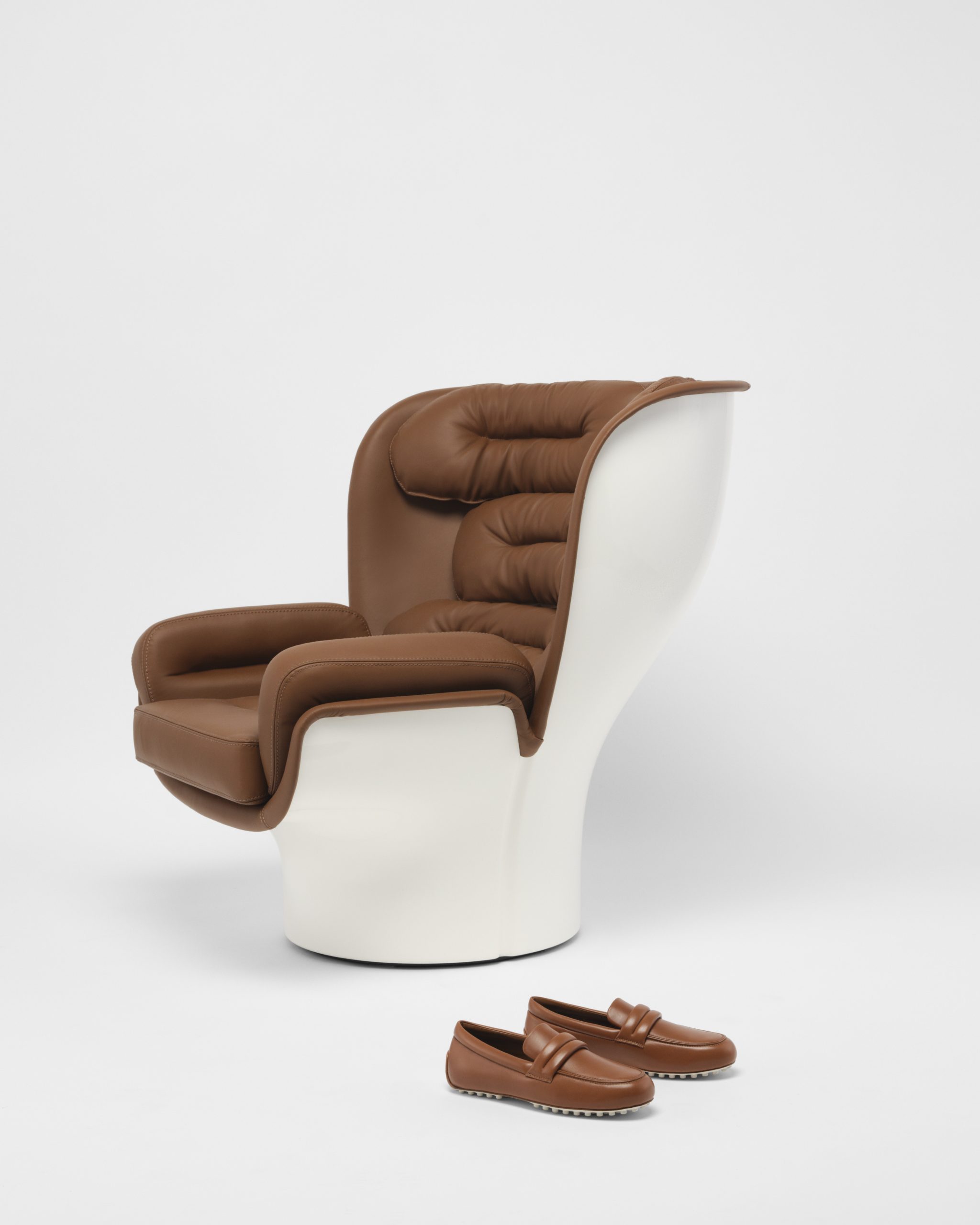โปรเจ็กต์นี้ตีความรองเท้า Gommino หัวใจสำคัญของโปรเจ็กต์ผ่านเอกลักษณ์การออกแบบจากทัhง 4 นักออกแบบระดับโลก ผู้ยกระดับงานออกแบบของอิตาลีสู่มาตรฐานโลก ผ่านงานออกแบบอันเป็นตำนานทั้ง 4 ชิ้น เก้าอี้เท้าแขน Elda โดย Joe Colombo ที่มีรูปทรงโอบล้อมและล้ำสมัย